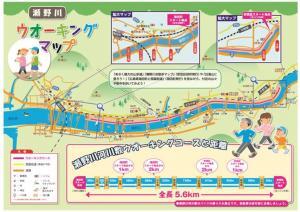 このマップは、安芸区と海田町を流れる瀬野川の河川敷の瀬野川ウオーキングコース(全長5.6km)を紹介するものです。