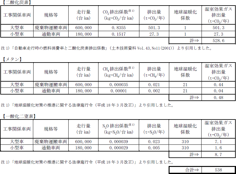 廃棄物運搬車両等の走行に伴い排出される二酸化炭素,メタン,一酸化二窒素の排出量を予測しました。