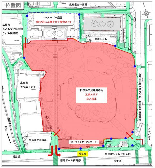 令和4年4月4日以降、旧広島市民球場跡地内への立ち入りはできません。また、周辺園路も一部通り抜けができなくなりますが、ご理解とご協力のほどよろしくお願いいたします。