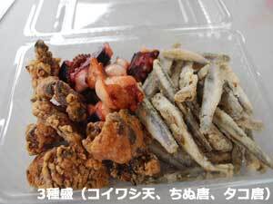 マツダスタジアム内の販売イベントでコイワシの天ぷら、クロダイの唐揚げ(ちぬ唐)の盛合せ等を販売しました。