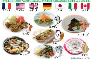 - 広島湾七大海の幸の魚種を使用しかつG7各国にちなんだ料理や各国の代表的な食材を使用すること。なお、複数の魚種や各国の食材を組み合わせることも可。