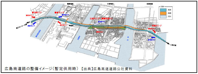 広島南道路(平成25年度末供用予定)により広域的なアクセス性が高まるものの、広島南道路から地区に直接アクセスする「県道南観音観音線」は現在、片側1車線で一部クランクとなっている