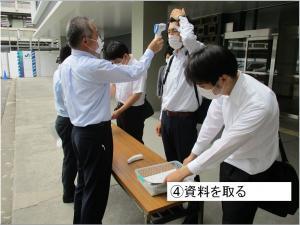 4 検温の結果が37.5℃未満の場合、資料を取って試験会場に入場してください。混雑を避けるため、手指消毒・体温測定場を離れてから資料をご覧ください。
