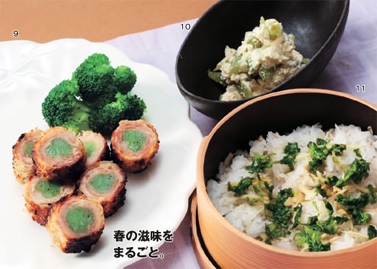 「ふきの皮のおかか煮」 ふきの皮は刻み、だしがらの削り節、だし汁で煮る。しょうゆ、みりんで好みの味にととのえる。