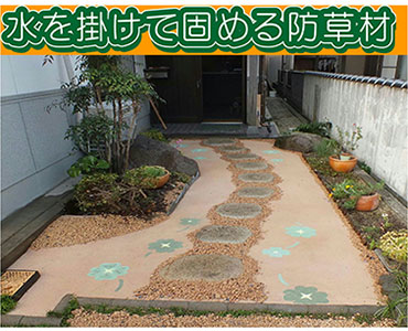 水を掛けると固まる石州瓦を粉砕した防草材。
