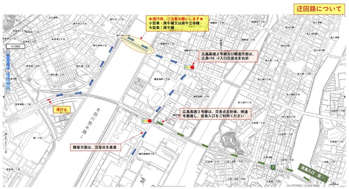 広島南道路:商工センター入口ランプの車両通行止