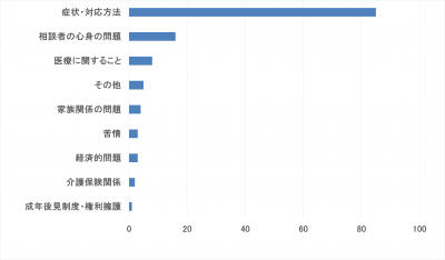一番多い相談内容は、「症状・対応方法」であり、次いで「相談者の心身の問題」、「医療に関すること」でした。