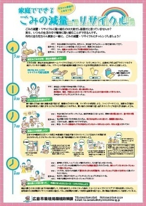 広島市では、市民や事業者のみなさまが、どのようにごみの減量やリサイクルに取り組めばいいかを説明したパンフレット「ごみの減量・リサイクルBook」を作成し、町内会加入世帯などへ配布をしています。