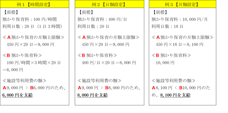 - り保育の月額上限額」と、B「預かり保育料」を月毎に比較して、AとBのうち、低い方を支給します。