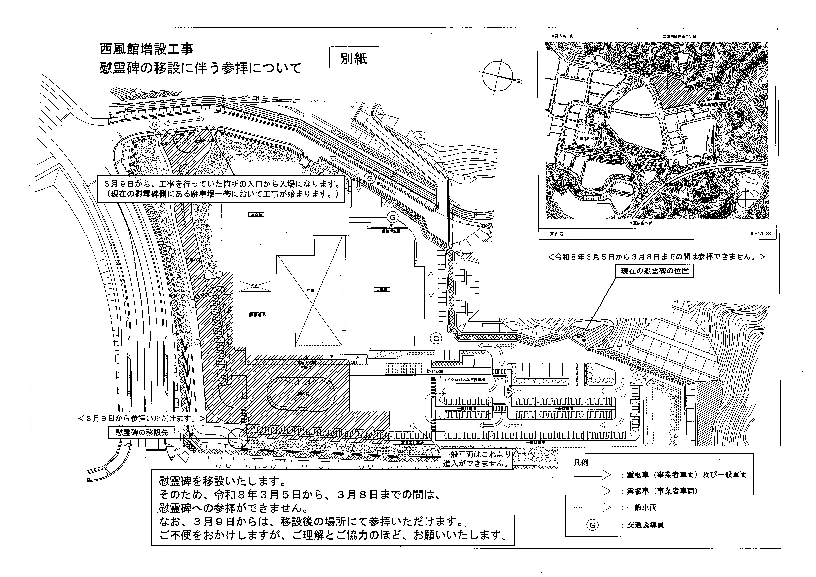 また、車両通行経路が変更となっていますので、案内表示の指示に従っていただきますようご協力をお願いします。