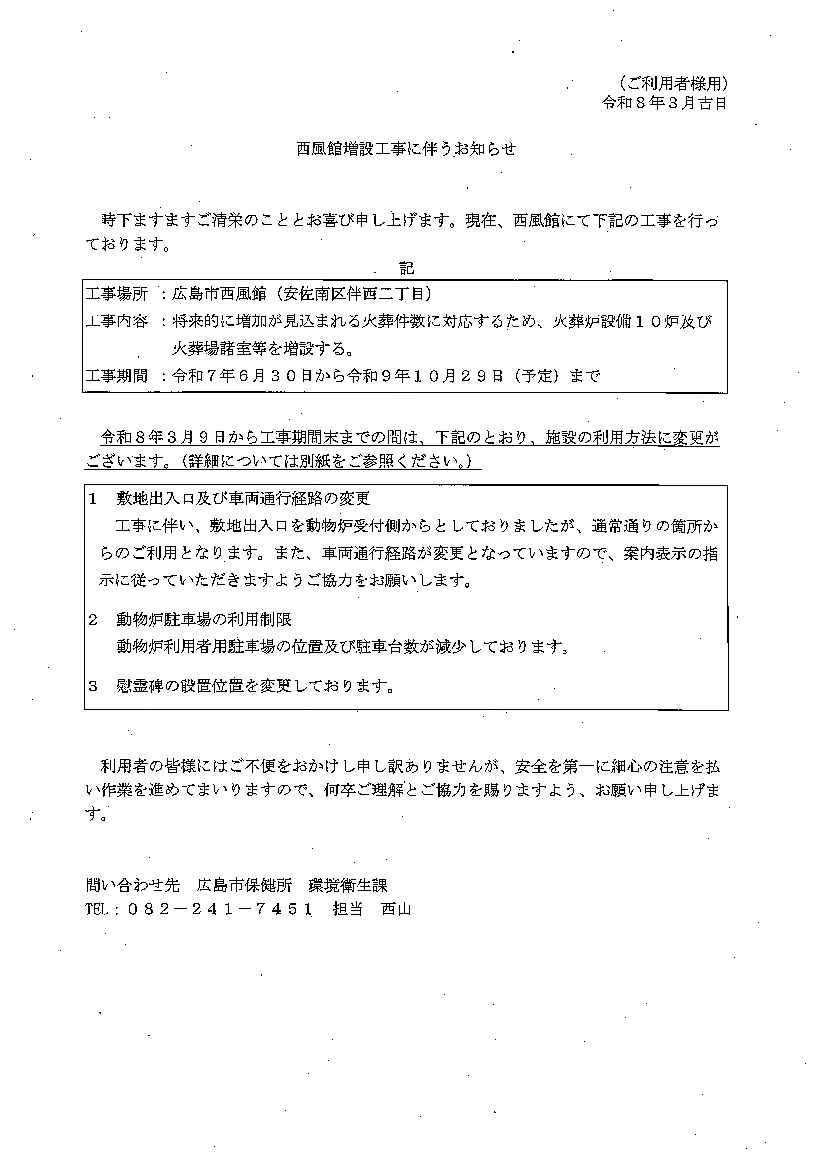 令和7年9月16日から令和8年3月(予定)までの間は、施設の利用方法に変更があります。