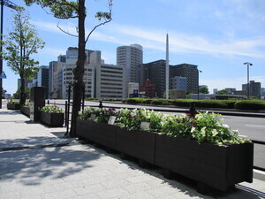 市街地再開発事業の完了により生まれ変わった広島駅南側の駅前通りの歩道上に、落ち着いた色合いの木製プランターを設置して四季の花を飾り、市民生活にうるおいを与えるとともに、広島を訪れる人々へおもてなしの気持ちを伝えます。