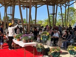 花で装飾された大屋根内ステージにて音楽ライブを実施!