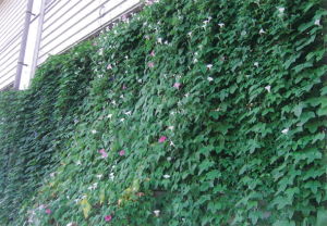 今年は昨年以上の暑さであった為、手入れをするにも大変だったが、きれいな緑のカーテンができ、白やピンク、黄色の花を咲かすことができよかったです。施設利用者からも好評でした。