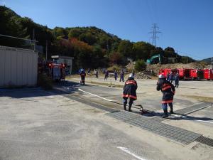 広島県消防学校グランド(安佐北区倉掛二丁目33番2号)において、消防ポンプ操法訓練成果披露会を実施しました。