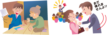 - 自宅等で「帰ってほしい」と言ったのに、帰らずに勧誘を続けた。