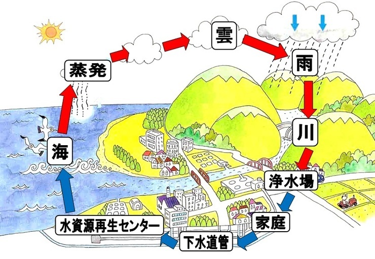 下水がキレイになって海へ戻るまでの様子。