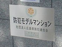 (社)広島県防犯連合会では、犯罪に遭いにくい構造・設備の基準を満たしていると認められるマンションを「防犯モデルマンション」として登録して、防犯意識の高揚と犯罪防止を推進しています。