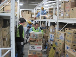 (同センターは岩手県の支援物資の集積場として使用されています。)