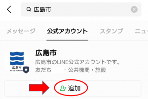 「広島市LINE公式アカウント」の「追加」を選択