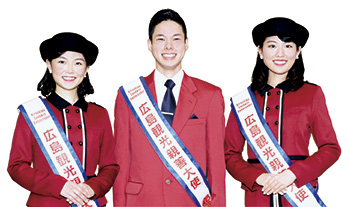 昨年11月、せとうち広島デスティネーションキャンペーンの観光PRのため、広島駅で来広者にパンフレットを配布しました(上写真)。「最初は緊張しましたが、大勢の人が快く受け取ってくれるうちに自然体で活動できました。皆さんお急ぎの中、広島の魅力を少しでも多くお伝えしたい自分の思いを温かく受け止めてくださいました」