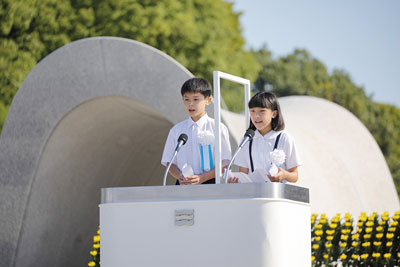 8月6日 原爆投下から76年の平和記念式典を、規模を縮小して開催。2年ぶりに放鳩と「ひろしま平和の歌」での合唱・吹奏楽が行われる