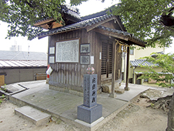 疱瘡(天然痘)にかかった天女姫が、宮島へ祈願に行く舟の中で亡くなり、この地に祭られたと伝えられています。
