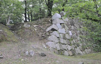 中御門があった場所です。被爆時の火災によって門は失われ、石垣の石も赤く変色したところがあります。