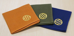 毛利元就家紋ハンカチ&箸、各市町認定証缶バッジ![]() |