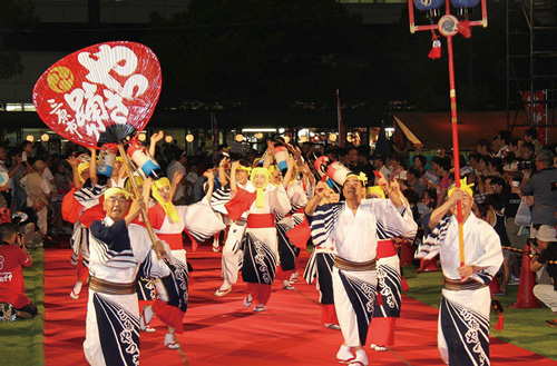 約7,000人の踊り手が、三原駅周辺を「やっさ、やっさ」と踊りながら練り歩く