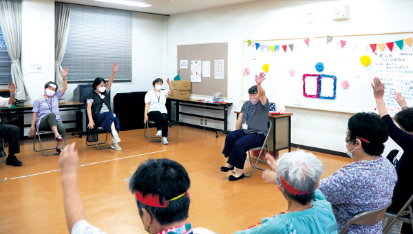 また、月ごとにメニューを変えて、介護予防、認知症予防を目的とした「ミニ運動会」、音楽療法としての「音楽鑑賞会」や、こいのぼりや風鈴の工作など、様々な講義・実技を共催団体の協力を得ながら行っています。