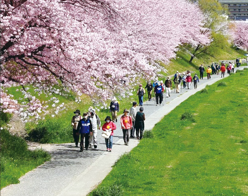 瀬野川河川敷の遊歩道をウオーキングします。気軽に楽しみましょう。解散場所のほことり広場では、ひろしまLMOの1つ、「ほことり総合企画LMO広島」主催の瀬野川さくら芝桜まつりが同時開催されます。
