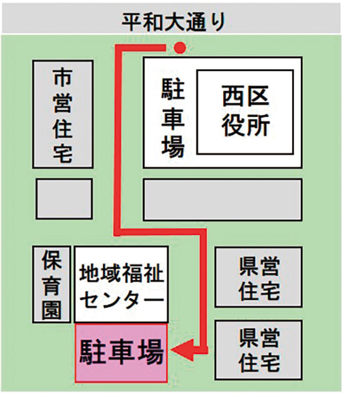 区役所駐車場も大変混雑します。駐車場混雑時は地域福祉センター駐車場も利用できます。できるだけ公共交通機関をご利用ください。ご協力をお願いします。