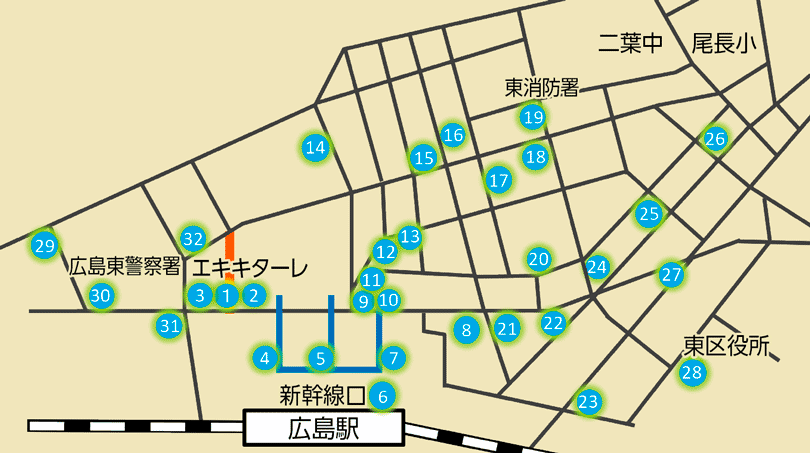 広島駅新幹線口周辺では、エキキターレをはじめ、多くの場所で「エキキタ・ドリミネーション」を開催中です。色とりどりのイルミネーションを巡りながら、冬の夜の街歩きをお楽しみください。