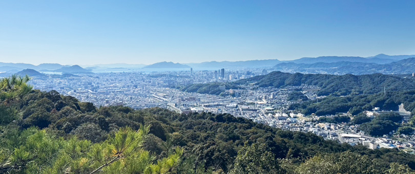 温品と府中町にまたがる高尾山の道中にある岩谷観音。展望地からは広島市内を見渡すことができます。駐車場も整備されているため、手軽に登山が楽しめます。