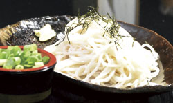 私の推しグルメは府中の白そばです。江戸時代から伝わる府中町の特産品で、そばの実の部分だけをひいて作られているため、見た目は白く、口当たりまろやかでしっかりとしたコシがあります。そのままでももちろんおいしいのですが、薬味をたくさん添えて食べるのが私のいち押し。